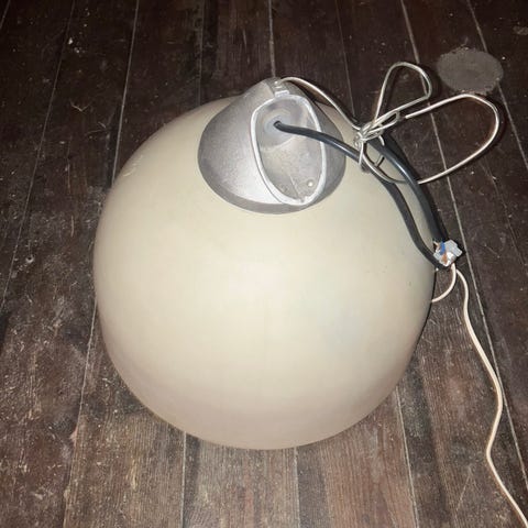 Københavnerlampe med ledning, wire ophæng og justerbar 3-trins pære inkluderet.