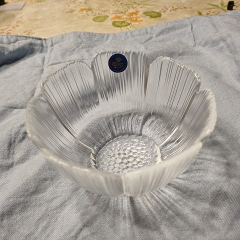 3 Royal Copenhagen Bellis skåle i glas. Sættet indeholder tre skåle i forskellige størrelser, velegnede til servering og opbevaring.