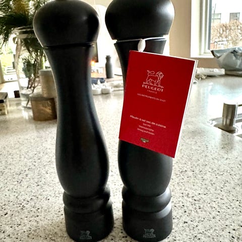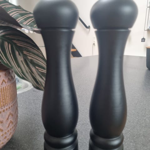Peugeot Clemont salt og peberkværn i sort træ 24 cm højt. Peberkværn er let brugt og salt er helt ny med mærke
