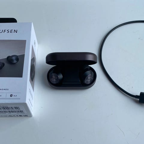 Bang & Olufsen trådløse hovedtelefoner i sort farve. Leveres med opladningsetui. Designet til at give trådløs lydoplevelse med fokus på komfort og brugervenlighed.