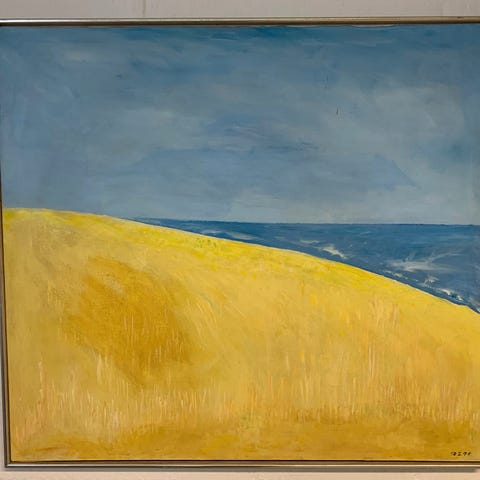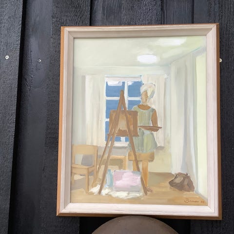 Oliemaleri, Michael Buus, motiv: Portrætter/Figurer, stil: Modernisme, b: 88 h: 129, Maleri på træplade af M Buus “verden er fyldt med farver”. Afhentes i Ølstykke efter aftale.