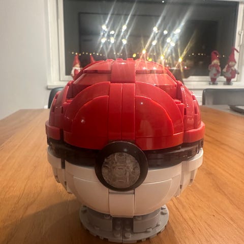 LEGO Poké Ball i rød, hvid og en lille smule sort. Er som ny og ingen klodser mangles.