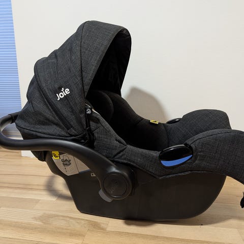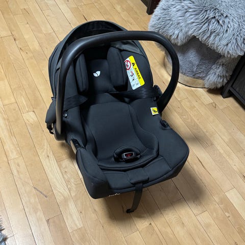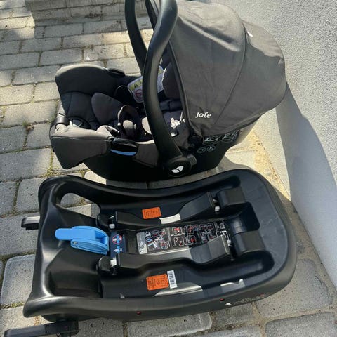 Joie i-Gemm autostol med base. Sort farve. Designet til spædbørn med polstret indvendigt sæde og justerbar sele. Inkluderer base til nem og sikker montering i bil.