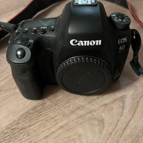 Canon EOS 6D Mark II digital kamera med EF 85mm f/1.8 objektiv. Kameraet er designet til fotografering med høj billedkvalitet og har en robust konstruktion. Leveres med batterioplader og kamerarem.
