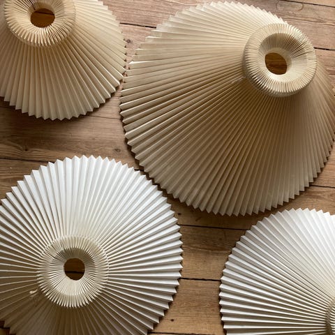 Jeg søger ophæng til den store le klint plisseskærm. Gerne incl skærm men ikke et must