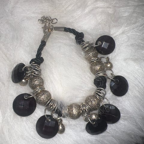 Smukt armbånd med perler og charms i boheme/vintage stil.