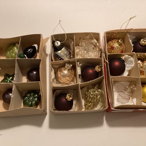 De smukkeste Retro og vintage julekugler i mindre størrelse, perfekt til det lille træ eller til en troldegren. , Flot julepynt i blandede nuancer, lidt forskellig alder og stand. Man må forvente aldersrelaterede brugsspor på de meget gamle dele og æskerne følger ikke med. Der er nogle helt specielle ornamenter imellem.