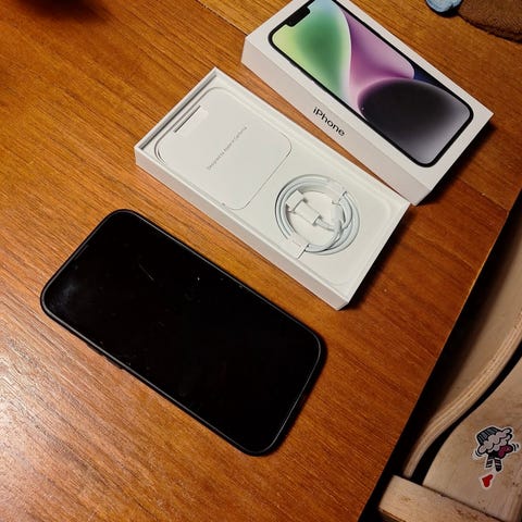 Velholdt iPhone 14 Plus. Med et batteritilstand på 82%