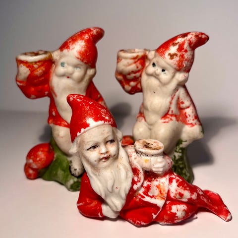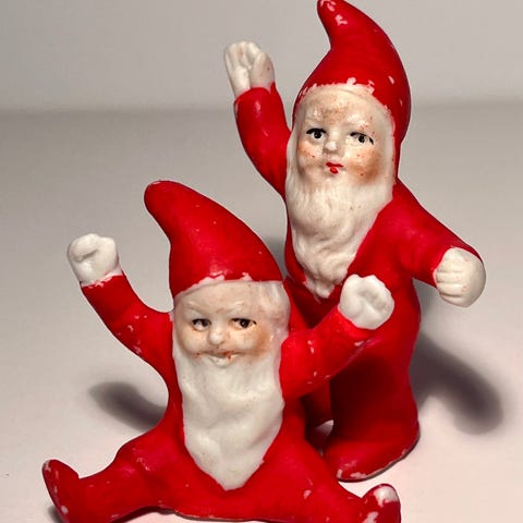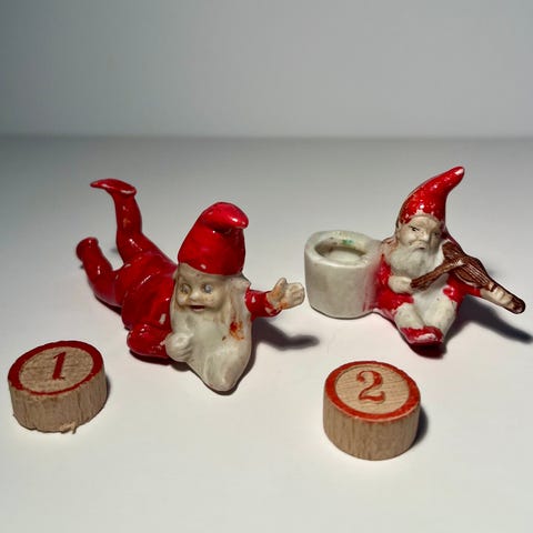 Skønne bisquite nisser fra en næsten glemt tid, den ene af de store nisser har mistet noget af hånden og derfor koster han også kun 75 kr