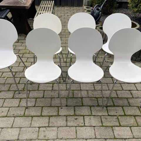 Skalstole brugt som ekstra stole, slidspor alle fødder intakt