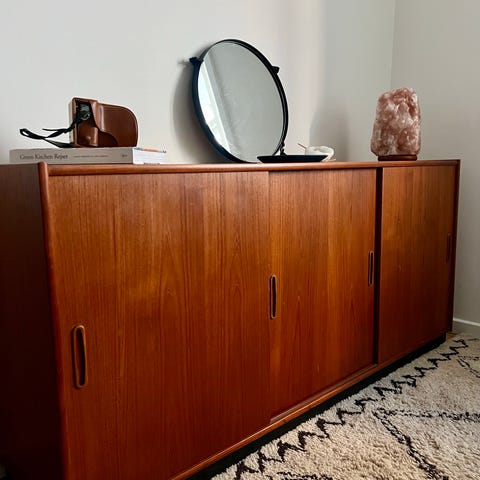 Der er få brugsspor ovenpå skænken men den er ellers i super fin stand og meget smuk. Kunne måske godt brugt en slibning og olie, men kan også sagtens bruges som den er.