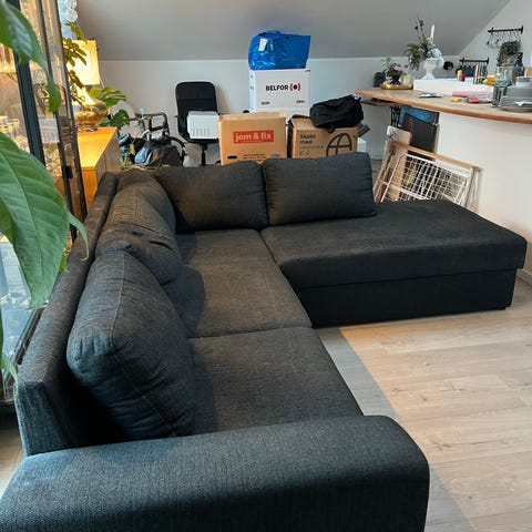 Hyggelig hjørnesofa med stor opbevaringsplads.