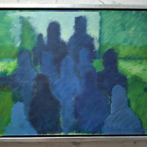 Maleri af insekter på let drømmende baggrund, malet på finerplade