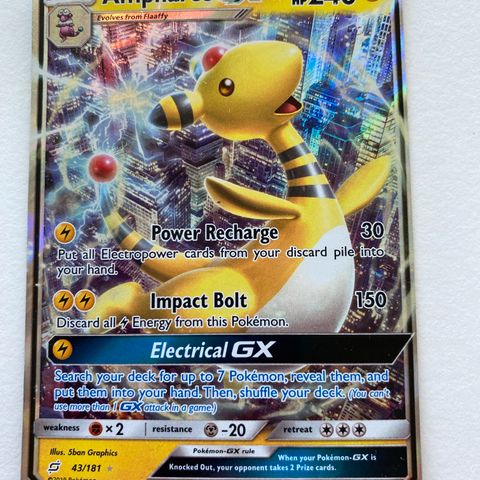 Drampa GX Pokémon kort med 180 HP. Kortet har angrebene Righteous Edge, Berserk og Big Wheel GX. Kortet er grundlæggende type og indeholder detaljer om angreb og svagheder.