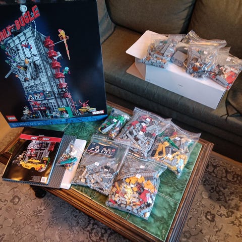 Sælger LEGO Daily Bugle i meget flot stand, professionelt udstillet i klar akryl montre.