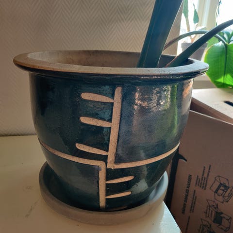 Keramisk urtepotte ikea med rillet overflade i grønbrun