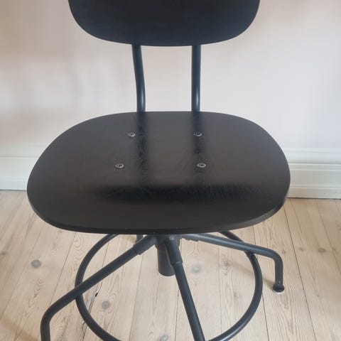 Ikea Kullaberg sort kontorstol, alm brugbar. Virker fint, vi kunne bedst lide den med en pude
