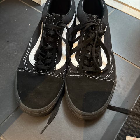 Vans sneakers i størrelse 40. Sort farve med hvide snørebånd og detaljer. Gummisål med mønster for greb. Velegnet til daglig brug.