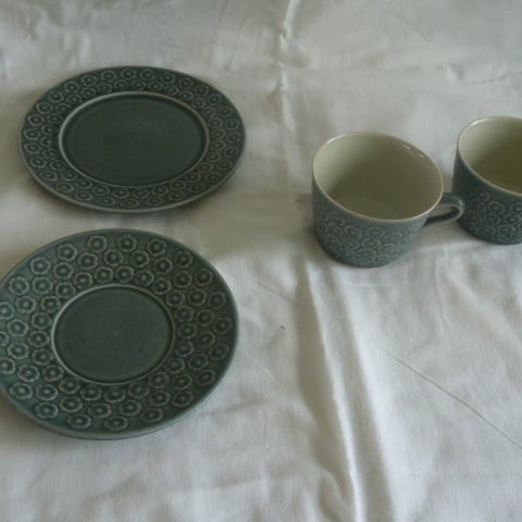 Fint sæt kop, underkop og kagetall: 450kr