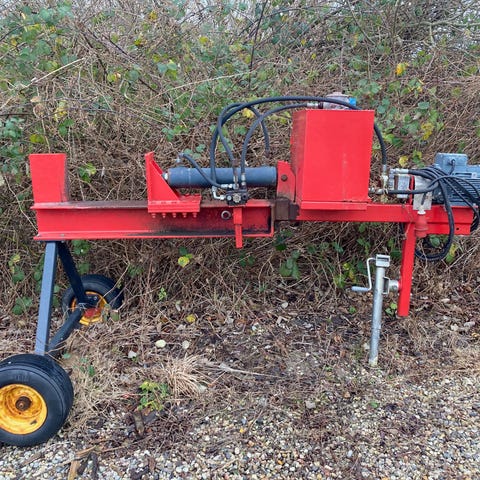 Nyistandsat brændekløver nyt olie nye oringe og pakninger. Stempelstok måler 50mm i diameter og cylinder indvendigt 110 mm . Er med fodpedal så man har begge hænder fri til at holde træet .vandringen er 54 cm en meget stærk kløver.