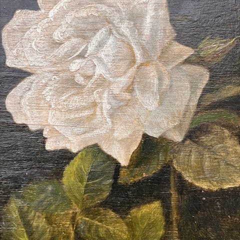Melon med blade og blomster, måske erotisk, skønner det er malet omkring 1950.
