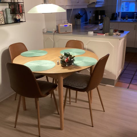 Spisebord med 2 tillægsplader på 40 cm pr stk
