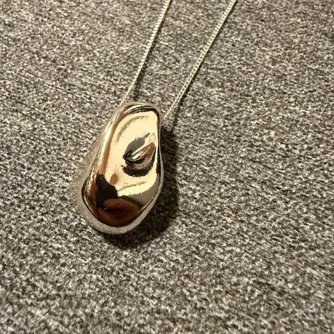 Pilgrim halskæde fremstillet af stål med detaljer i andet materiale, designet til kvinder. Halskæden har flere dekorative elementer fordelt langs kæden.