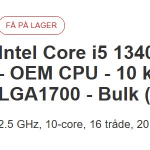 Intel Core i5-14400F Raptor Lake-S CPU - 10 kerner - 2.5 GHz - Intel LGA1700.