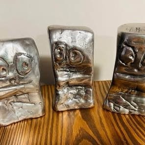 Serie bestående af 3 forskellige skulpturer i massivt poleret aluminium. 8½ cm høje.
