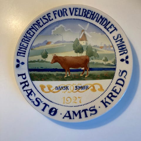 Antoni / B & G smørebrik eller platte. Her med en eskimo / INUIT i rødbrun streg og må antages at være et dansk / grønlandsk flag. Diameter 14,5cm.