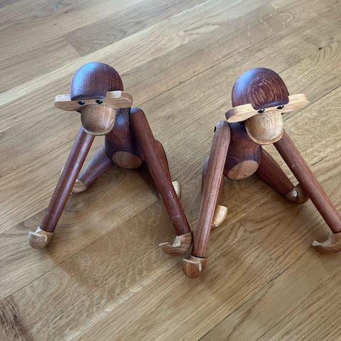 3 stk. Kay Bojesen aber, mini (sort, blå og gul) aldrig stået fremme, nye med kassr. Alle 3 for 600 kr. 1 for 220 kr. så står du lige og mangler en mandelgave eller julegave kan de hentes i Solrød Strand.