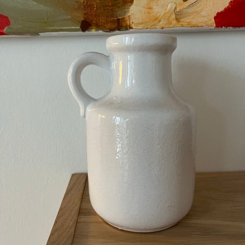 Flot schramberg vase med blomster. Desværre en revne i ( men holder tæt) og et lille afslag, derfor billig