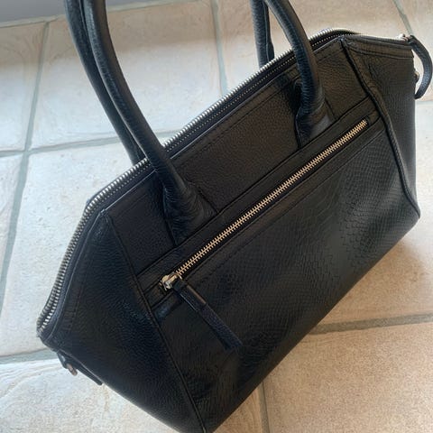 Tasken er ubrugt og fremstår helt ny Lukkes med magnet og har lynlåslomme indvendigt Justerbar rem så den kan bæres crossbody eller over skulderen