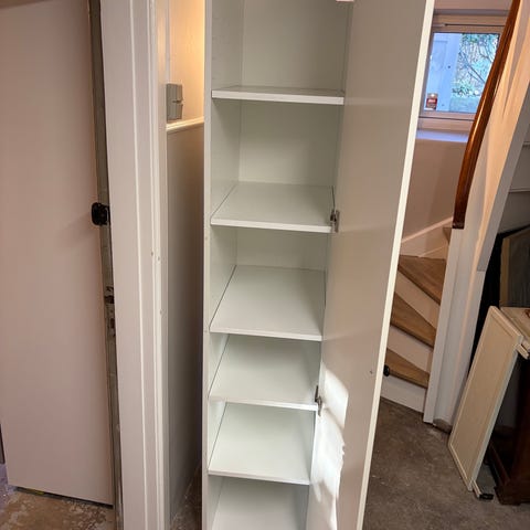 Garderobeskab i god stand, har dog en ridse på siden som kan ses på sidste billede.