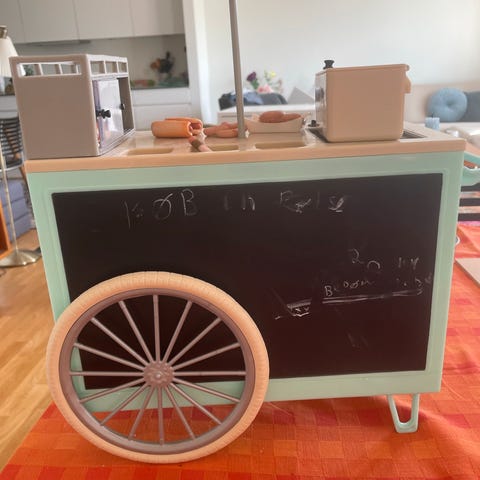 Our Generation retro hot dog cart. Paraplyen er lidt i stykker. Næsten alle små dele er med.