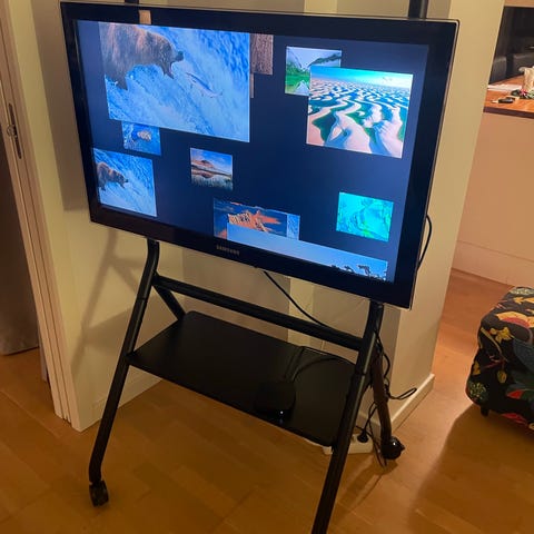 OBS: nederste beslag mangler (se billede 5), men det har ingen betydning for produktet og stabiliteten af tv’et, men derfor den billige pris.