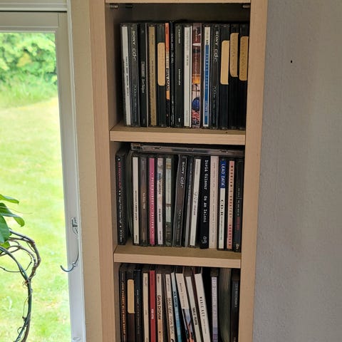 Disse tre CD-racks danskproduceret af Ferreo A/S med plads til 50 CD'ere i hver sælges samlet. De er 125 cm. høje