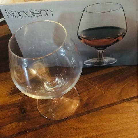 Glassene er Luminarc Napoleon cognacglas, som blev fremstillet af Verrerie d'Arques i Frankrig i løbet af 1960'erne.