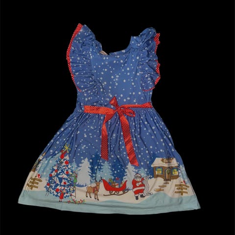 116 122 Julekjole kjole ternet rød guld blå mørkeblå jul
