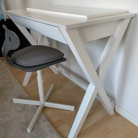Hvidt skrivebord med skuffer