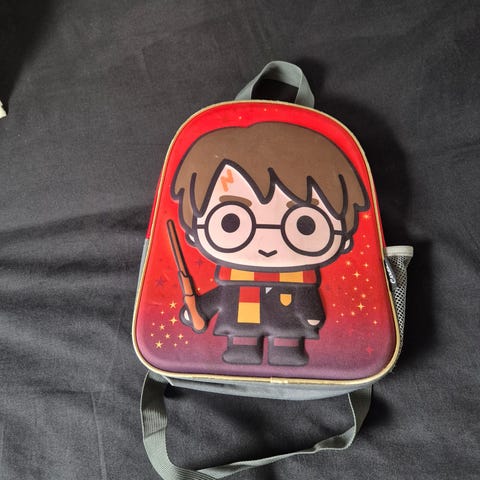Sælger denne brugte Originale Harry Potter Gryffendor mini rygsæk lavet i mørkerød fløjlsstof.