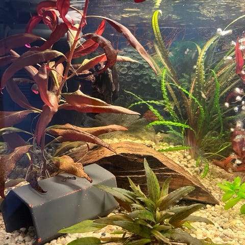 Går godt med gubby, neonfisk og andre fredelige fisk.