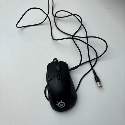 SteelSeries Rival 110, computer mus med USB-forbindelse. Sort farve, kablet tilslutning, egnet til brug med computer. Designet til generel computerbrug.