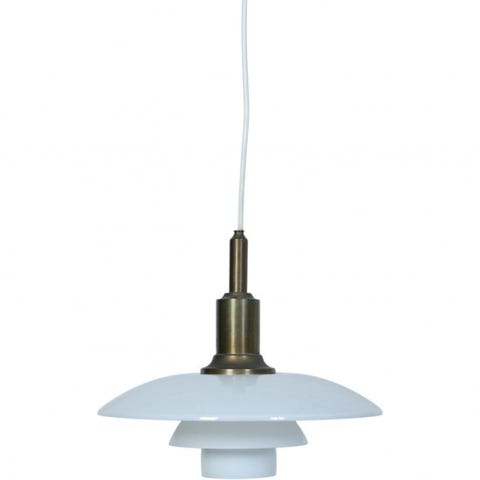 Poul Henningsen 3/2 pendel med bruneret messing fatning og hvide opalglas skærme. Lampen fremstår i pæn stand med alle skærme intakte. Det er en jubilæums udgave lampe fra 1994. •Designer: Poul Henningsen •Producent: Louis Poulsen •Produktions år: 1994 •Model: 3/2 pendel •Mål: Højde: 24 / Diameter: 29 Cm •Materialer: Bruneret messing og opalglas skærme •Stand: Brugt Poul Henningsen 3/2 pendel fra 1994.