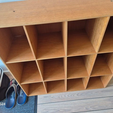 Mogens Koch dyb reol af eg. Reolen er fra 1980'erne og fremstår i god stand med enkelte mærker og ridser. •Designer: Mogens Koch •Producent: Rud Rasmussen •Produktions år: 1980'erne •Model: Dyb reol •Mål: Højde 76 / Bredde 76 / Dybde 35,5 cm •Materialer: Eg •Stand: Brugt Mogens Koch dyb reol af eg 1980'erne