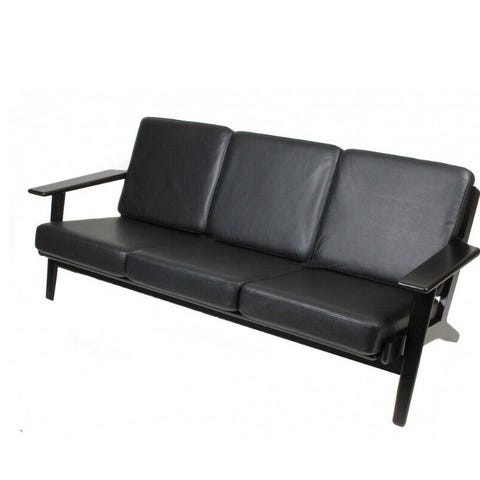 Hans Wegner 3-personers GE290 sofa i sort læder og sæbebehandlet eg