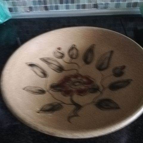 Tallerken medfølger, Ø 18,5cm, den har 2 små skår i kanten.