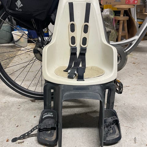 Glimrende frontmonteret barnecykelsæde. Sælges til halv pris af nypris da den har en enkelt skramme (se billede). Let at montere på cyklen og let at sætte barnet i.