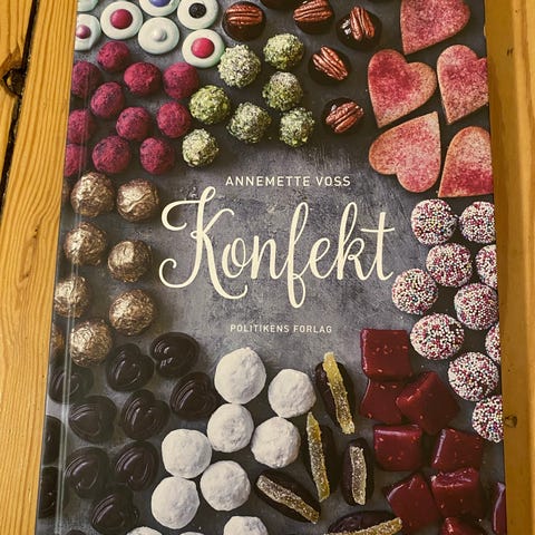 Anne Mette Voss Konfekt kogebog med opskrifter på forskellige typer konfekt. Bogen indeholder billeder og tekst, der beskriver fremstillingsprocessen af konfekt og detaljerede opskrifter.