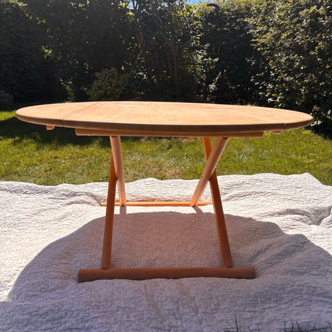 Flot design -sofabord:"hjertebord " fra anton dam møbelforretning. Bordet er fremstillet på Haslev møbelfabrik og er designet som et hjerte - deraf navnet ( hjertebord). Det er massivt træ og meget tungt/solidt og trænger til frisk ny maling. Et rigtig massivt og flot sofabord, fx. til sommerhus